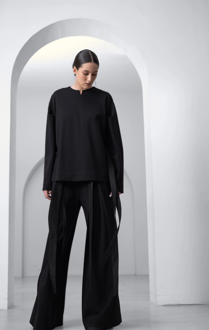 Каждый шаг в этих брюках чувствуется уверенно – приятная к телу ткань комфортно заземляет благодаря своей тяжести